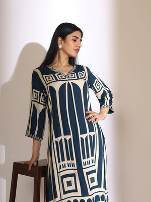 Yellow Geometric Embroidered V-Neck Calf Length Pure Cotton Straight Kurta Set