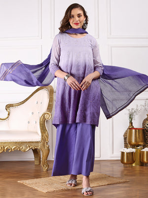 Ombre Embroidered Regular Thread Work Pure Cotton Kurta with Trousers & Dupatta