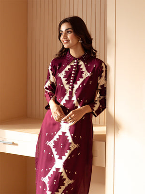 Thread Work Straight Pure Cotton Kurta With Trouser and Scalloped Schiffli Dupatta