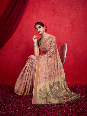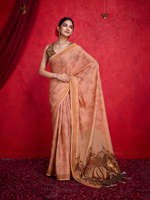 • Peach Poly Silk Festival Saree With Blouse Piece
