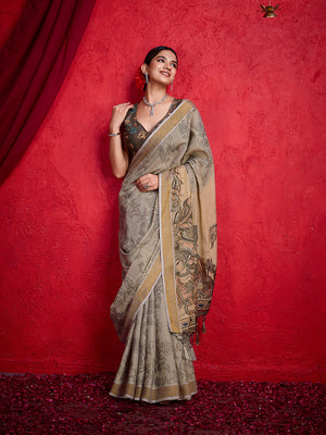 • Beige Poly Silk Festival Saree With Blouse Piece