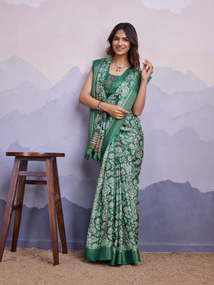 • Green Poly Silk Festival Saree With Blouse Piece