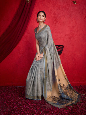 • Grey Poly Silk Festival Saree With Blouse Piece