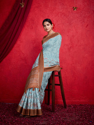 • Blue Poly Silk Festival Saree With Blouse Piece