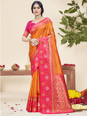 • Orange Silk Saree With Blouse Piece