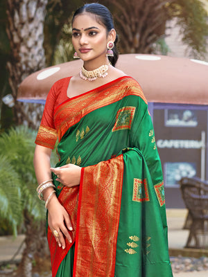 • Green Silk Saree With Blouse Piece
