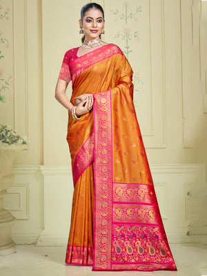 • Orange Silk Saree With Blouse Piece