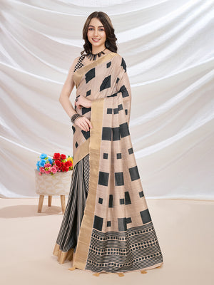 • Beige Silk Blend Casual Wear Saree With Blouse Piece