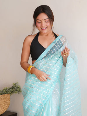 • Sky Blue Organza Silk Saree With Blouse Piece