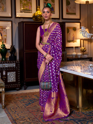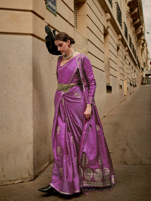 • Purple Khadi Copper Zari Saree With Blouse Piece