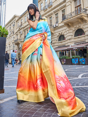 • Multicolor Satin Saree With Blouse Piece