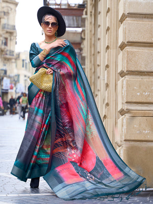 • Multicolor Silk Printed Saree With Blouse Piece