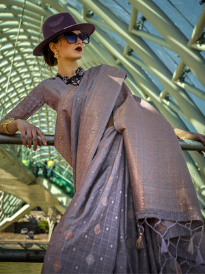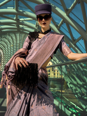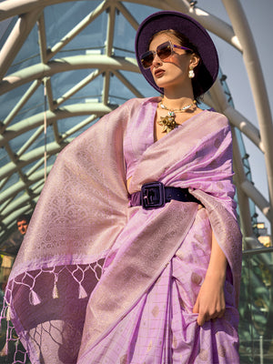 • Lavender Kanjivaram Silk Saree With Blouse Piece