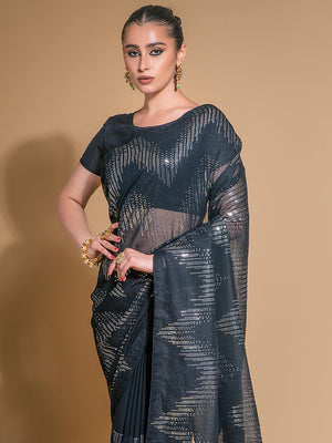 • Black Georgette Sequins Embroidered Designer Saree with Blouse