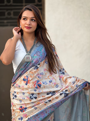 • Grey Banarasi Silk Blend Saree With Blouse Piece