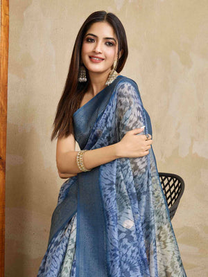 Mintgreen Silk Chiffon Viscose Border Floral Printed Saree Saree With Blouse Piece