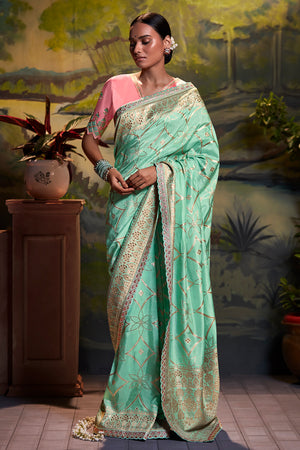 • Millenial Pink Khaddi Georgette Banarasi Saree