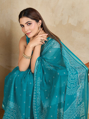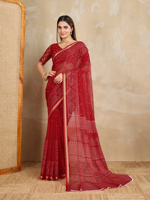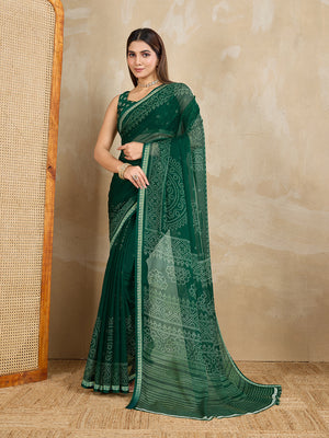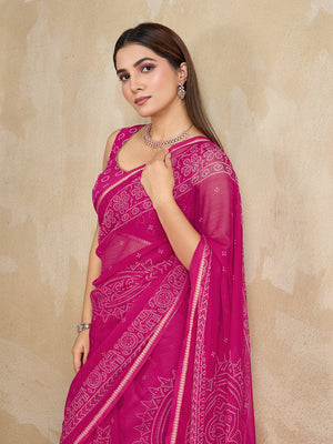 Pure Chiffon Bandhani Printed Saree With Viscose Woven Border And Blouse Piece