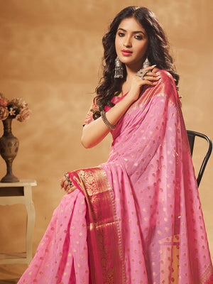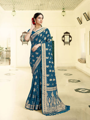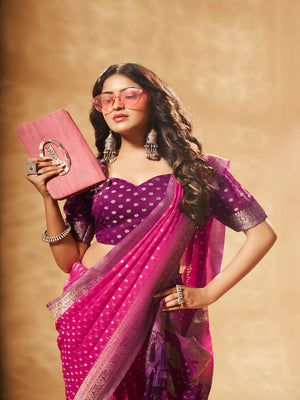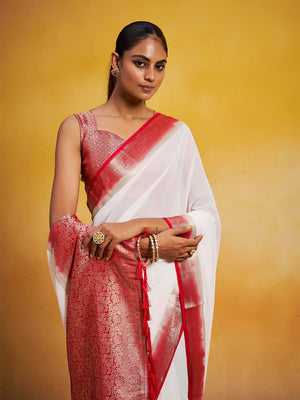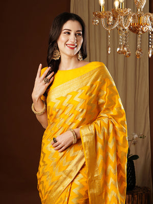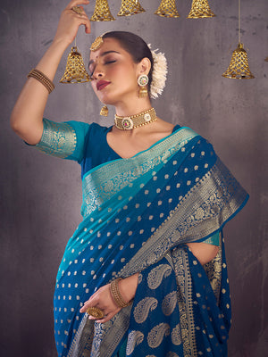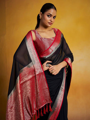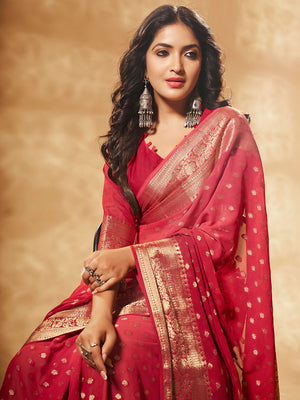 • Georgette Banarasi Silk Saree With Blouse Piece
