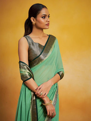 • Georgette Banarasi Silk Ready to Wear Saree With Blouse Piece