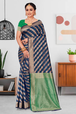 • Navy Blue Woven Kanjivaram Saree - Special Wedding Edition