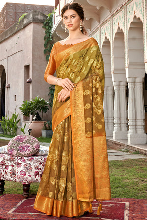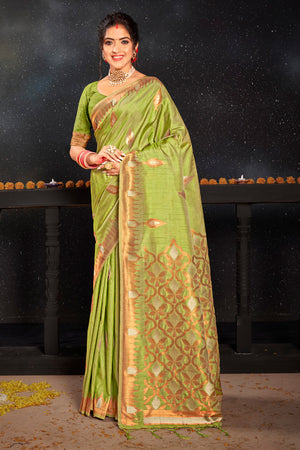• Olive Green Banarasi Chanderi Saree