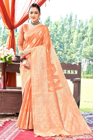 • Salmon Orange Silk Saree