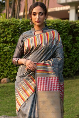 • Anchor Grey Leaf Butta Design Kanjivaram Saree