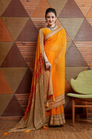 • Canary Orange Georgette Saree