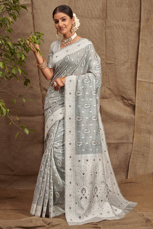 • Concrete Grey Linen Blend Saree