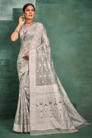 • Coin Grey Linen Blend Saree