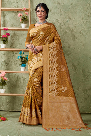 Bright Yellow Khaddi Georgette Banarasi Saree