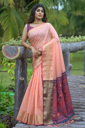 • Peach Banarasi Chanderi Saree