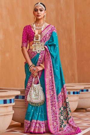 • Cyan Blue Patola Saree