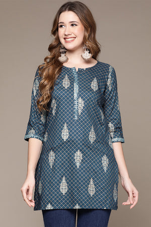 • Women's Navy Blue Ethnic Motifs Printed Kurti