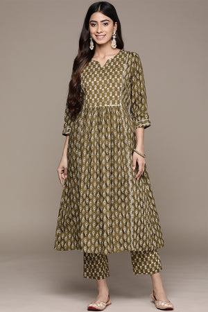 • Women Mustard Yellow & Brown Screen Printed Straight Kurta