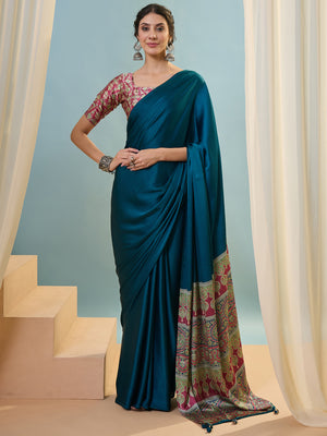 Blue Soft Silk Sarees Premium Two Tone Satin Fabric With Unique Pathani Type Designs Saree With Blouse Piece