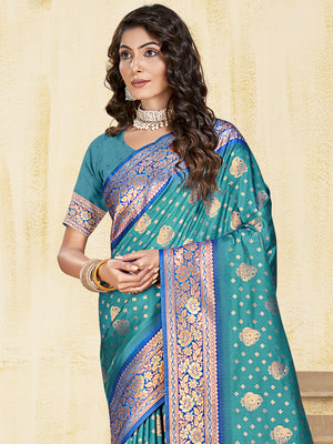 This fabric looks brilliantly beautiful with almost every shade of blue colour. On top of that, the intricate weaving and elaborate zari work on Banarasi sarees make them a great choice of style for those looking for a timelessly classic blue saree that is perfect for special occasions.