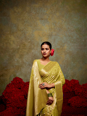 Mehendi Soft Kanjivaram Paithani Silk Zari Woven Designer Saree with Blouse