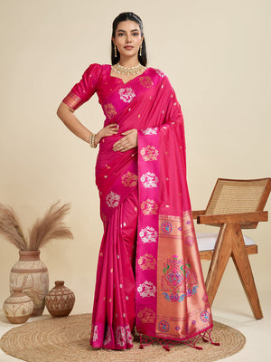Rani Pink Soft Kanjivaram Paithani Silk Zari Woven Designer Saree with Blouse