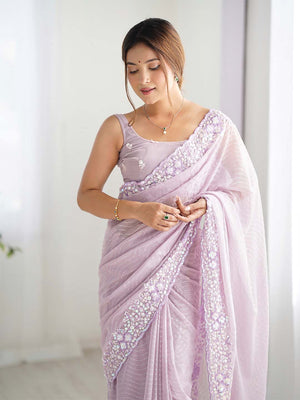 Lavender Candy Crush Padding Sequins Embroidery Work Ultra Sattin Saree With Blouse Piece