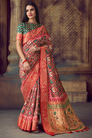 Wedding Patola Sarees: Patola Sarees from Gujarat are known for their bright colours and geometric designs that are identical on both sides of the sarees. Wedding Patola sarees are an emerging trend in recent years with brides going for a more bold and vibrant look. The unique styles that one can try with these sarees are endless making them an instant favourite when it comes to wedding sarees online.