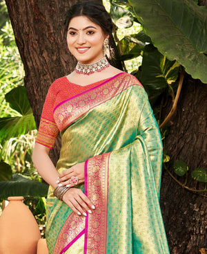 Mehendi Soft Kanjivaram Paithani Silk Zari Woven Designer Saree with Blouse