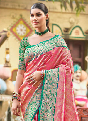 Pink Soft Kanjivaram Paithani Silk Zari Woven Designer Saree with Blouse