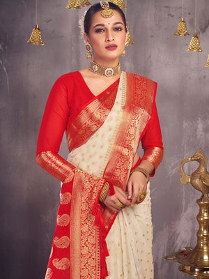 Geige Tissue Silk Adorned With Gorgeous Woven Butta Saree With Blouse Piece
