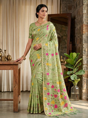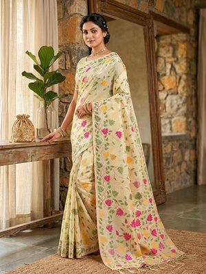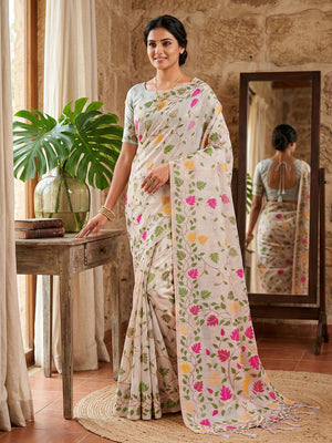 These sarees are a popular choice among saree lovers due to their unique texture and versatility. These sarees are made from natural flax fibres, which are known for their durability, breathability, and eco-friendliness.