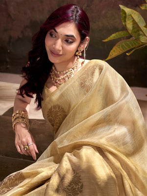 Geige Tissue Silk Adorned With Gorgeous Woven Butta Saree With Blouse Piece