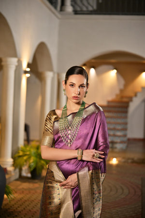 Light Purple Soft Silk Handloom Weaving Saree Border With Gold Zari Silk
