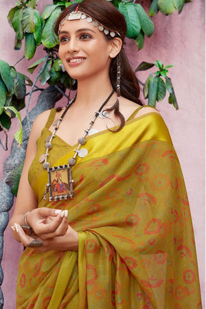 • Beautiful Dijon Yellow Cotton Linen Blend Saree