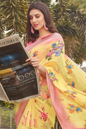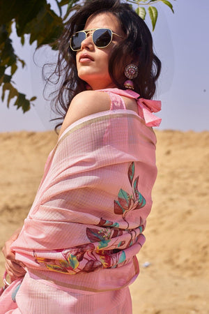 • Beautiful Baby Pink Cotton Linen Blend Saree